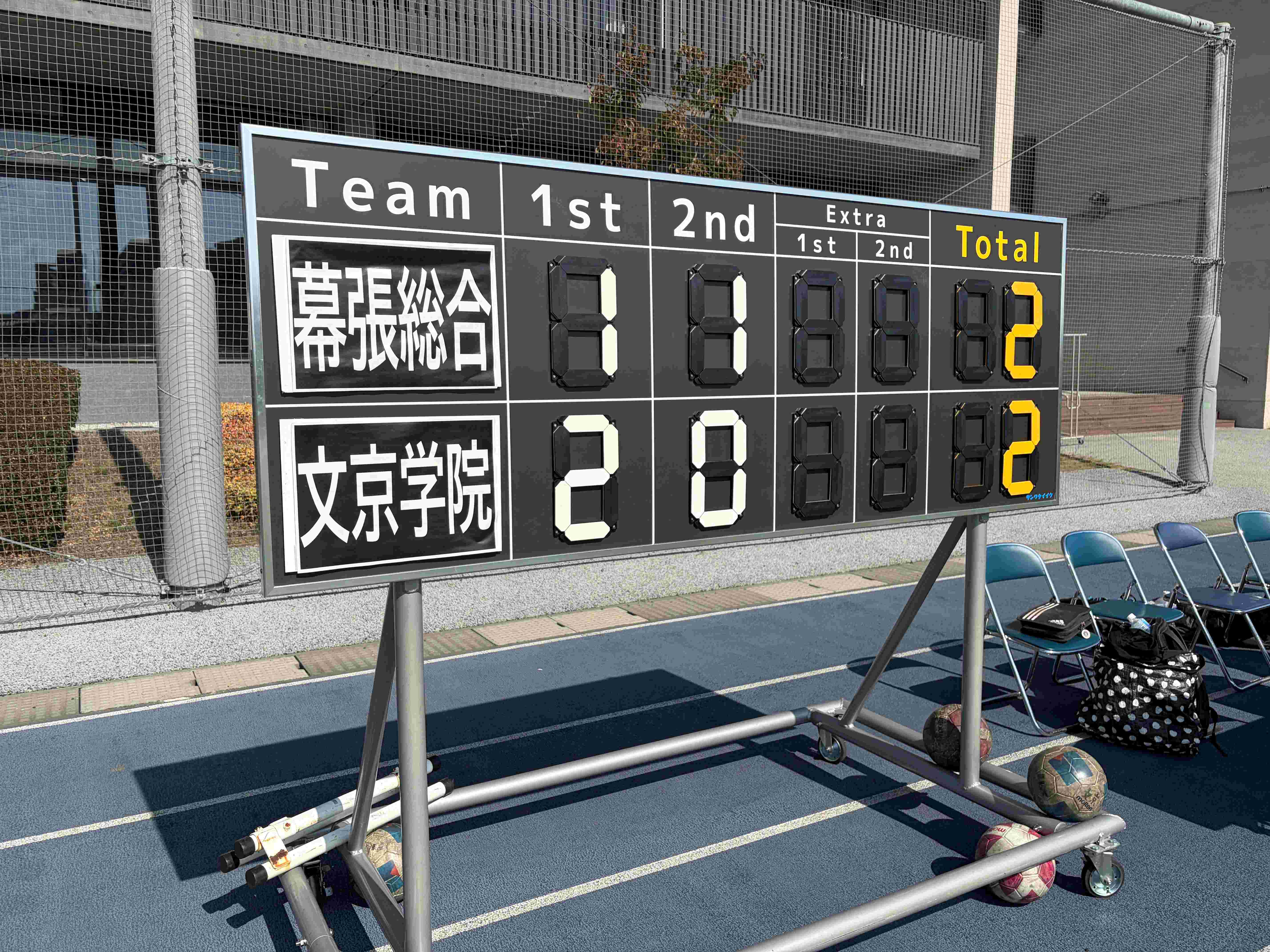 試合前の持ち上げ作戦が功を奏したかどうかは検証できませんが、相手が油断してくれたおかげで、先制ゴールが生まれました。後半になると、相手は本気になり、何度も危ない場面を迎えました。ボールがしっかり蹴れて、トラップも上手く、よく走る・・・文京は70分で、バテバテだったのに、幕総は、全然平気・・・という感じでした。