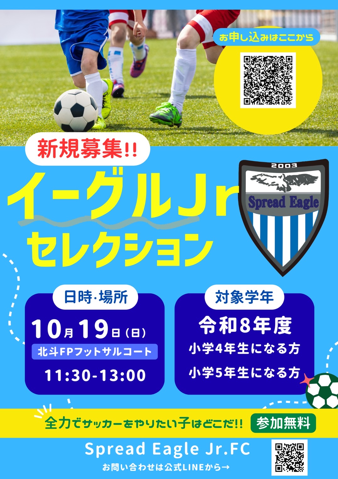 令和8年度、Spread Eagle Jr. FCで一緒にサッカーの歴史を刻みませんか?